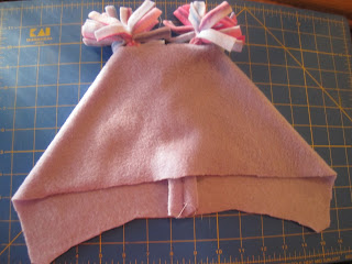 Then pin the second layer of fleece to the wrong side of your top side so it looks like this.